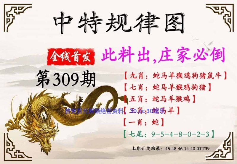 309期:九肖★猴马蛇狗牛兔龙猪★开:鼠06中