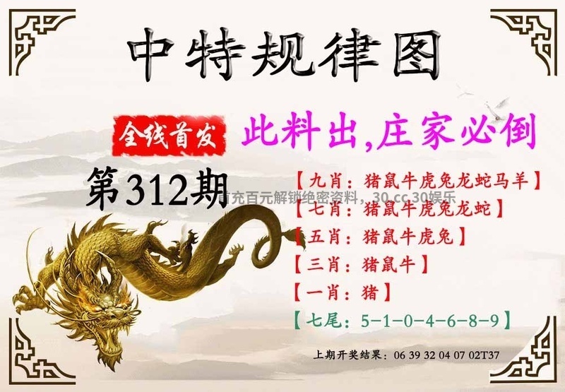 312期:九肖★兔羊马猴鼠猪牛蛇狗★开:龙14
